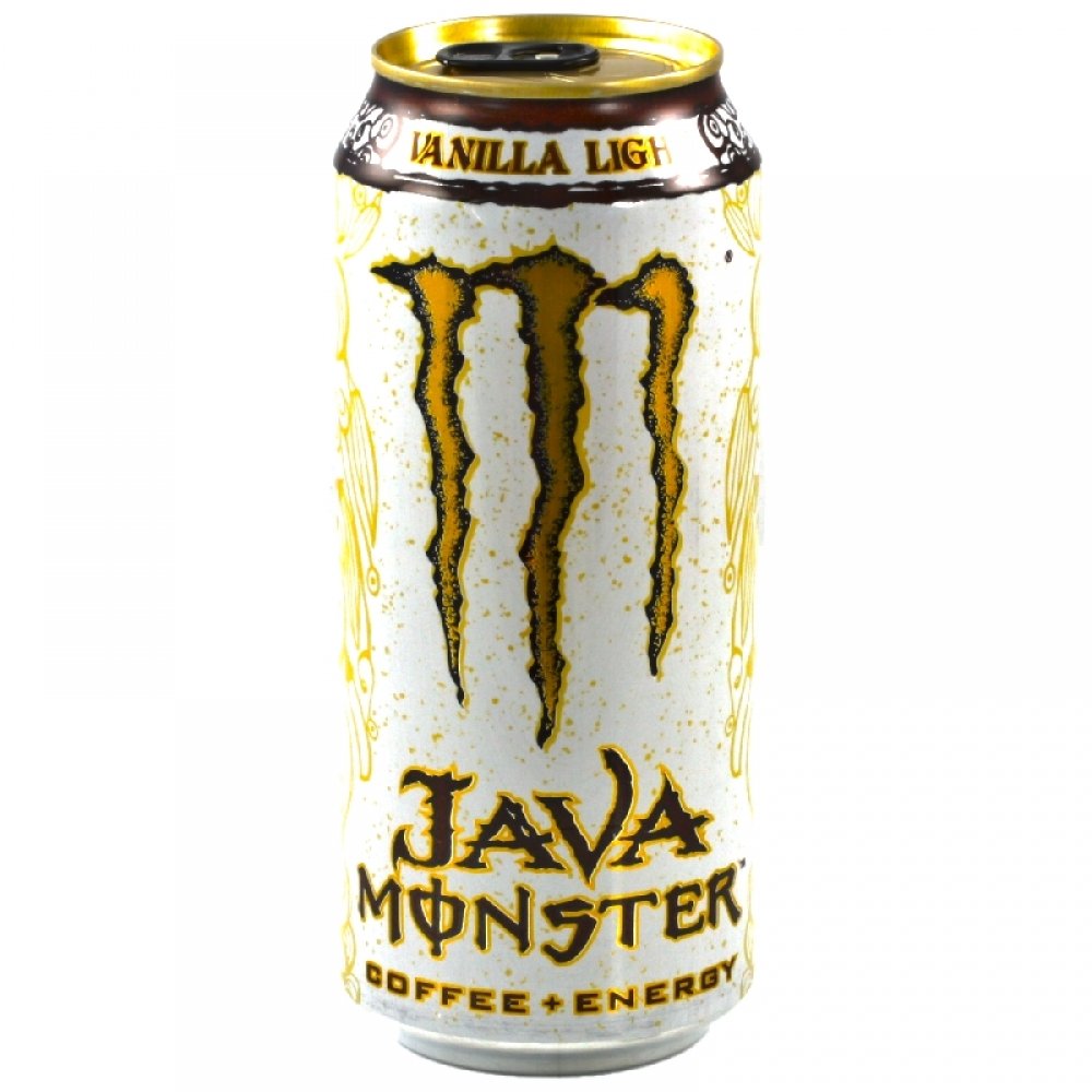 Caffe Monster Ingredients. Calories 20 Kcal 1. Mean Bean Java Monster premium coffee and cream brewed up with a killer Vanilla Bean flavor supercharged with the Monster energy blend and 188mg of caffeine per can.