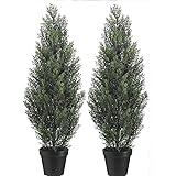 Silk Tree Warehouse Two 4 Foot Outdoor Artificial Cedar Topiary Trees Uv Rated Potted Plants Amazon Ca Home